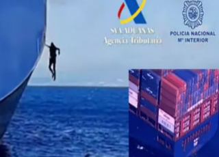 近日,達飛旗下一艘船名為“OLIVIA I”的集裝箱船被西班牙警方拍到船上毒品走私的全過程。?據了解,OLIVIA I輪在從哥倫比亞卡塔赫納港出發(fā)經過直布羅陀的途中,被西班牙執(zhí)法機構舉報有可能從集裝箱船上卸下可卡因,此后西班牙執(zhí)法機構對其進行了密切監(jiān)視。?兩名偷渡者一直藏在船上的某個地方(應該是在集裝箱里),當船接近卸貨點時,他們把裝有可卡因的包裹扔進水