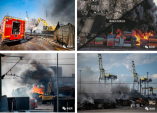 猶如世界末日!成堆集裝箱燒毀,所有業(yè)務停止!港口被毀恐停擺數(shù)月伊斯肯德倫港位于地中海沿岸,是土耳其東南部第二大港。在強震發(fā)生后,港口部分坍塌,碼頭的集裝箱堆場發(fā)生了火災,目前港口已經(jīng)停止所有業(yè)務,土耳其貿(mào)易面臨長期障礙。某保賠協(xié)會表示,造成損失高達6.79億美元,并警告稱地震的破壞可能會影響該港運營中斷數(shù)月之久。土耳其交通部航運總局在Twitter上發(fā)布的視頻片段顯示伊斯肯德倫港火災后世界末日的景