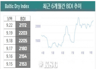 ???? ??, ??? ??? ??9? ?? ? ??? ??? ?? ???? ???? ????? ?? ??? ???. 9?22? ???? ????(BDI)? 2172? ????, ????????? ??? ??? ???? ????(KDCI)? 2?987? ????. ??? ??? ?? ??? ??? ?? ????